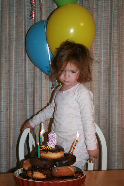 there will be another donut cake and balloons. and this will be the first year that she "gets" it, i think.